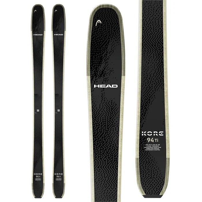 The classic Head Kore 94 Ti Skis gain a little weight and a ton of power with the addition of two sheets of Titanal in the layup, and skiers who push the limit everywhere on the mountain will feel and appreciate the difference. Head’s Freeride Sandwich Cap Construction features a Karuba and Beech wood core, “Mini Cap” construction with cap over sidewalls, and the distinctive precision the Kore skis have always been known for with a bit more guts.